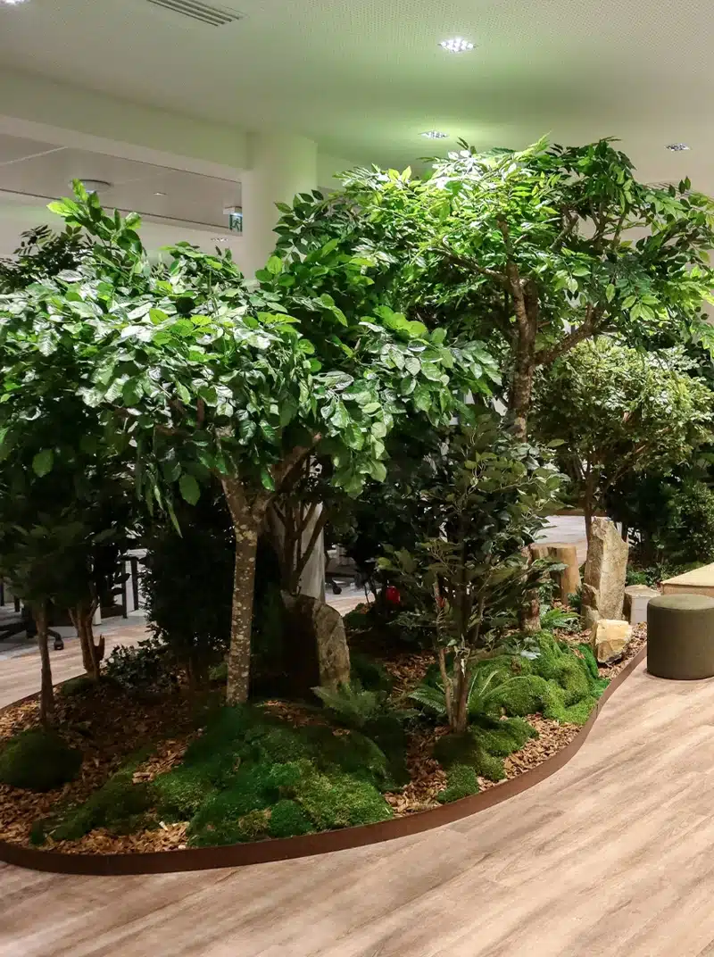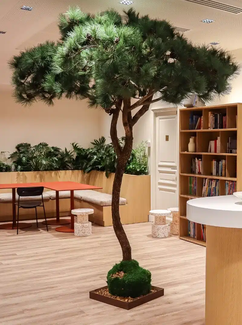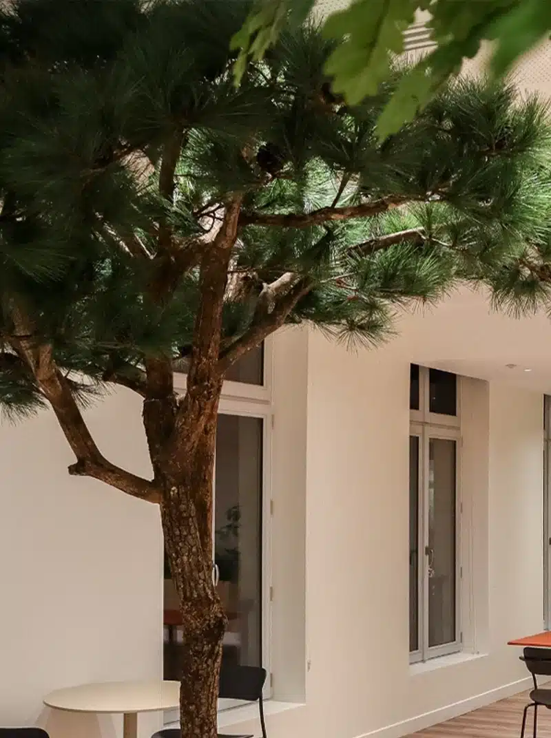 Avec des hauteurs allant jusqu’à 6 mètres et un large choix d’essences (Olivier, Acacia, Pin, Cerisier, Bouleau, Charme, Bonsaï…), nos arbres s’adaptent aux halls d’entreprises, espaces retail ou environnements bien-être.