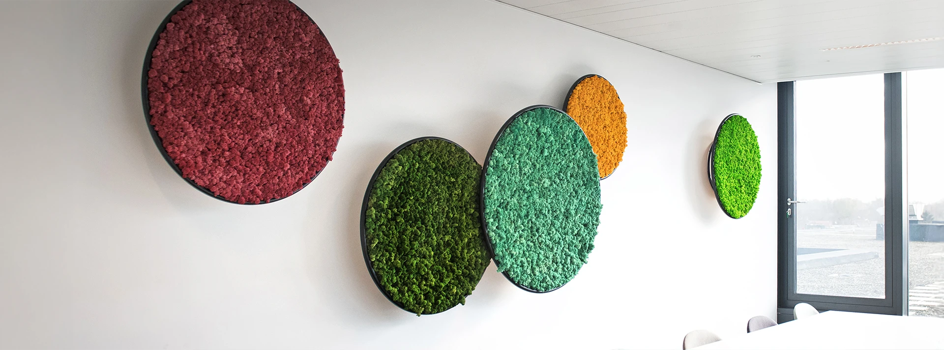 Le G-Circle est un panneau circulaire 3D garni de mousse, de lichen ou de plantes sauvages entièrement préservés.