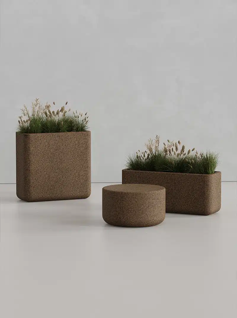 Nos jardinières sont plus que de simples contenants. Ce sont des pièces de design polyvalentes qui allient durabilité et fonctionnalité. Des jardinières modulaires en liège qui se transforment en mobilier aux formes géométriques épurées ou aux finitions sophistiquées, chaque modèle élève l’espace par un équilibre unique entre nature et design.